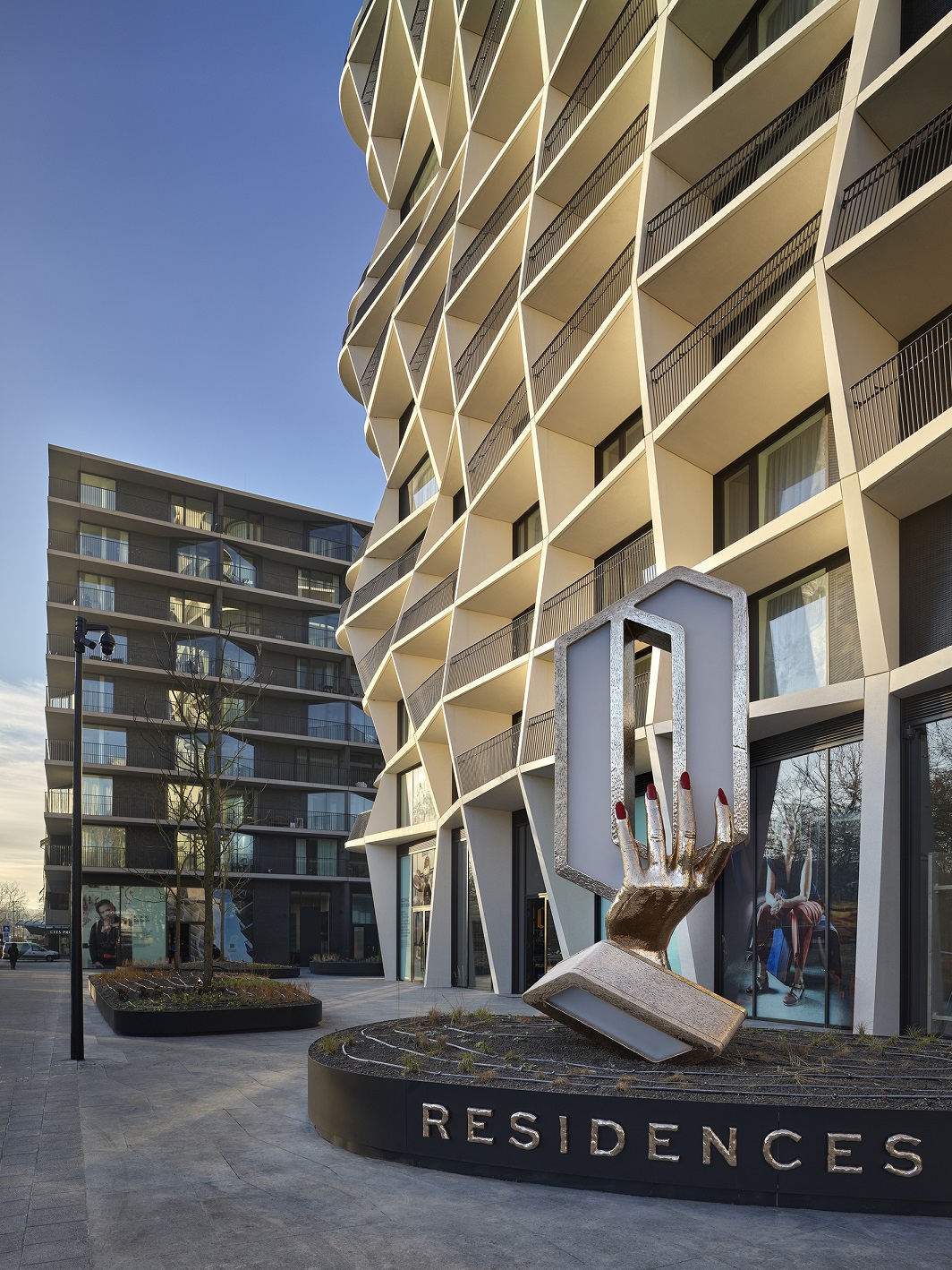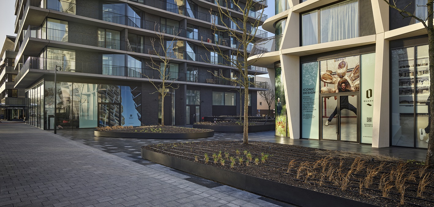Q Residences is een nieuwe landmark, met 248 huurwoningen en een plaza op de begane grond.